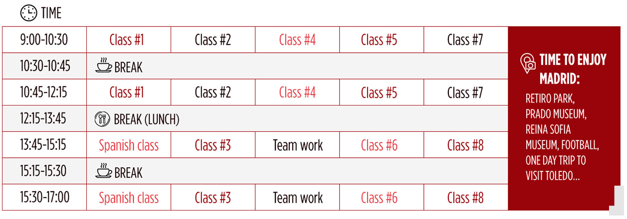 The program is delivered in downtown Madrid, at a central location close to the Royal Palace, Opera House, and Plaza Mayor. The campus building is one of the best examples of the 1930s “rationalist architecture” in Madrid, has been totally renovated, and hosts most of the university’s Master’s degrees, thus providing a great networking environment.
